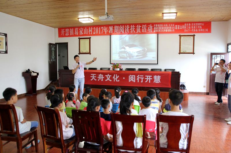 为丰富我省农村留守儿童的暑期文化生活,推动“书香湖南”全民阅读活动深入村组,8月15日,天舟文化积极响应由省新闻出版广电局发起的“书香湖南·阅行者计划”2017年暑期阅读扶贫志愿者活动,前往长沙县开慧镇葛家山村、开慧村开展农村少年儿童阅读实践公益活动。