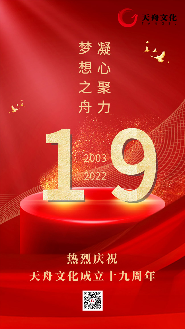 2003.8.18-2022.8.18,热烈庆祝天舟文化成立19周年!