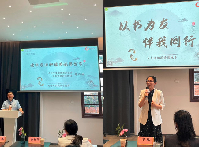 天舟文化党支部书记、工会主席匡舒平宣布了阅读漂流季的开启,她表示:从今年“4.23世界阅读日”起公司成功举办了为期21天的阅读打卡活动,这也是一系列阅读活动的开始,希望大家坚持阅读打卡,通过不同方式传播正能量,让阅读为家庭和工作赋能。